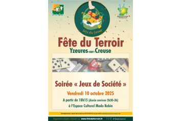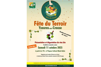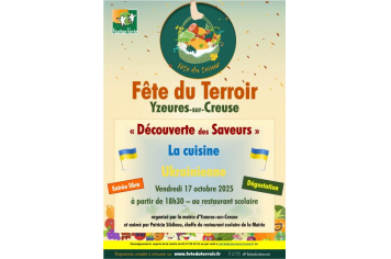 Fête du Terroir d'Yzeures-sur-Creuse Du 04 Octobre 2025 au 25 Octobre 2025 Découvrez le programme de la Fête du Terroir sur notre commune d'Yzeures-sur-Creuse ! Jeux, randonnée, dégustation, visite, ... il y en a pour tous les goûts !